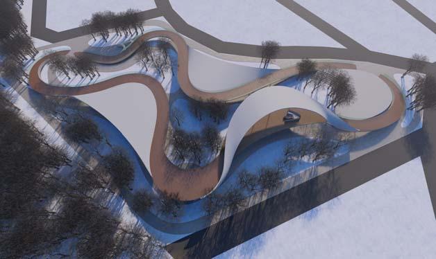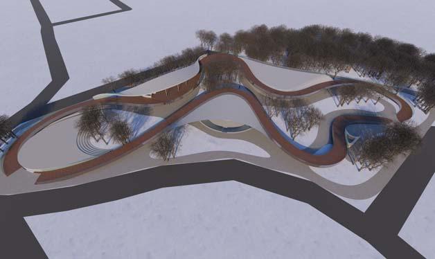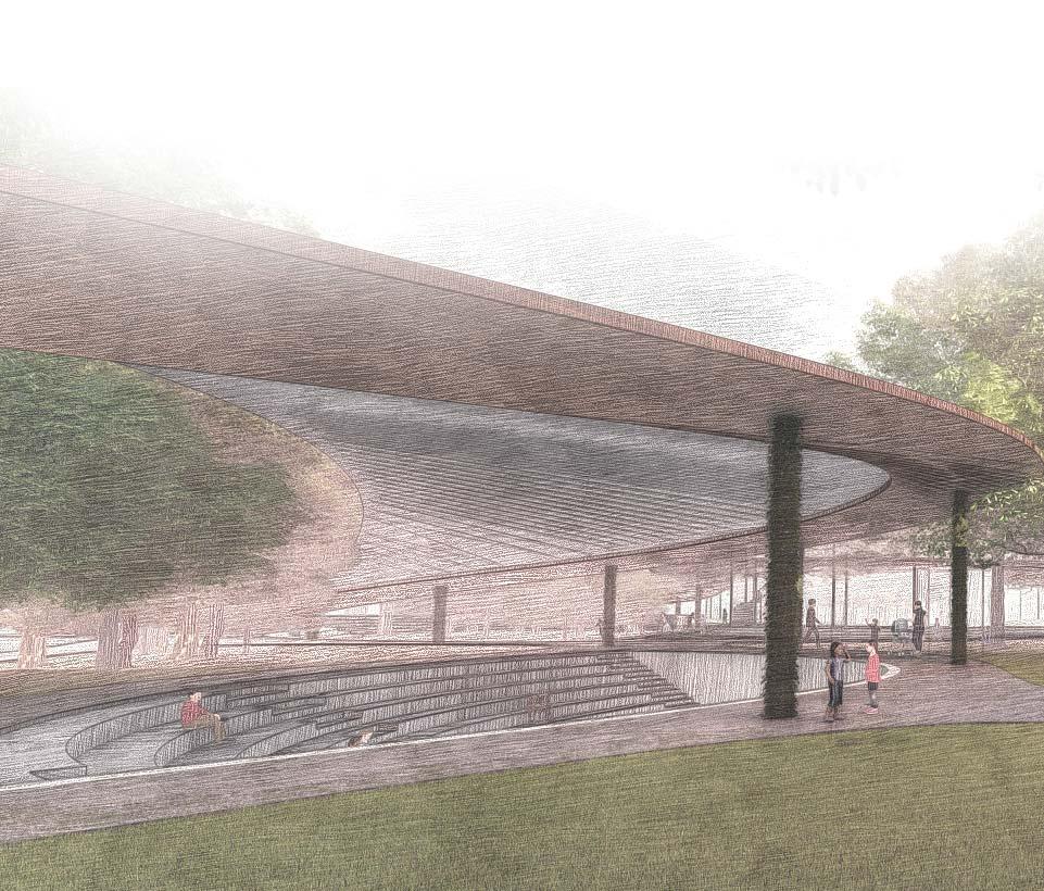 THE OBJECTIVE WAS TO MAKE IT WELCOME FROM BOTH SIDES WHILE AL CINEMA HALLS PRIVATE BECAUSE PEOPLE PAY TO SEE MOVIES. AS CUSTO THE MOVIES, THE HALLS WERE DESIGNED TO BE MORE PRIVATE. THE NAT AND THE FUNCTIONS PROVIDED ON THE SITE INFLUENCED THE BUILDING AND EAST CURVES ARE PRODUCED BY THE LAKE AND THE DRIVEWAY, AN BOTTOM SLOPES ARE FORMED BY THE FILM HALLS.