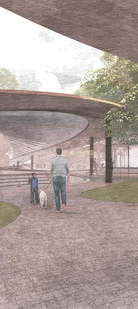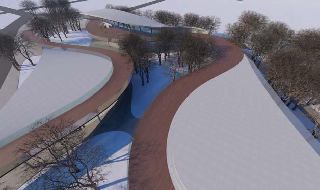 Undulated walkway creating different spacial qualities +