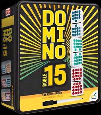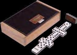 Viene en práctico estuche de curpiel en forma de ficha de dominó.Contenido: 28 fichas de dominó de acrílico y 5 dados de poker. UPC: 655244020644