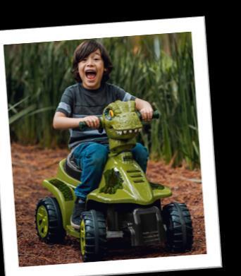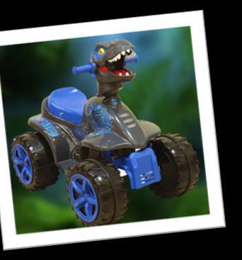 Raptor 12V Dinosaurio Moto Eléctrica 12V • Ruedas anchas todo terreno • Ruedas traseras con banda de hule antiderrapante • Batería seca recargable 1 x 12 volts • (Incluye cargador) • Motor de 12V con velocidad de 6 km/hr, • Acelerador de pedal y cabeza con luz y sonido • Soporta hasta 35 Kg MOD: 2214 Ayuda a desarrollar: Coordinación de Movimientos Orientación Espacial Reflejos y Autonomía DINOSAURIOS 9