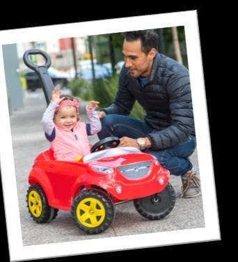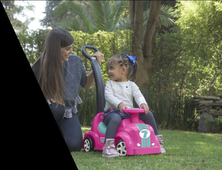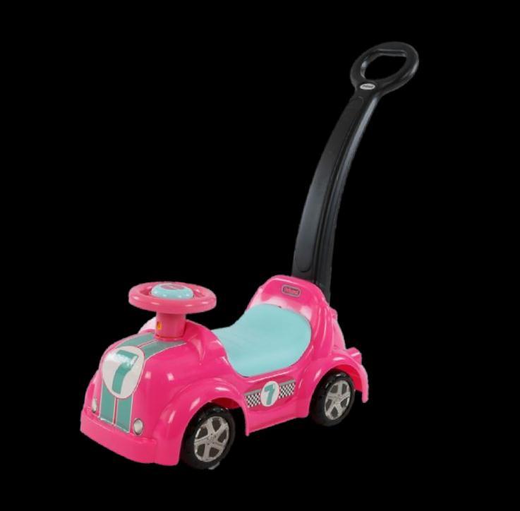 Bye Bye Push Car • Montable correpasillos • Con barra de empuje desmontable. • Asiento con compartimiento para guardar juguetes • Claxon con simulación de sonido • Soporta hasta 18 Kg MOD: 1696 1697 Ayuda a desarrollar: Fuerza en las piernas Orientación Espacial Actividad Física PUSH CAR 61
