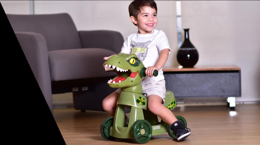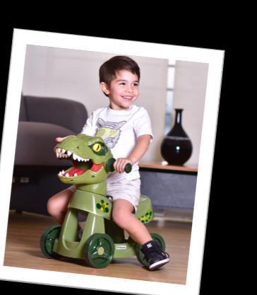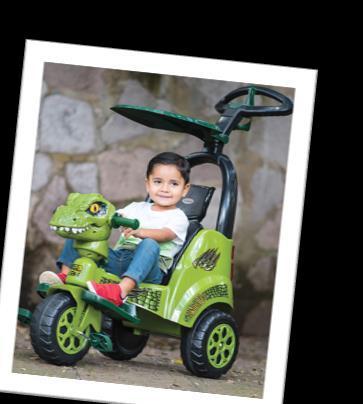 Super Trike Dinosaurio Triciclo Evolutivo • Respaldo Ajustable a 4 posiciones • Techo Removible • Descansa pies desmontable • Cinturón de seguridad de 3 puntos • Cabeza con luz y sonido • Amplio compartimento trasero • Soporta hasta 25 Kg ⊵ Video Video MOD: 1341 Ayuda a desarrollar: Coordinación de Movimientos Canalizar Energía Fuerza en las piernas DINOSAURIOS 11