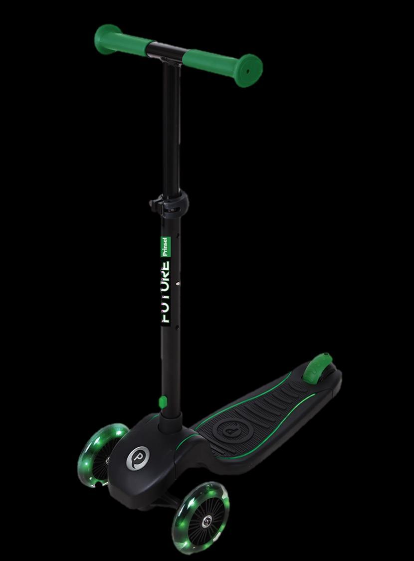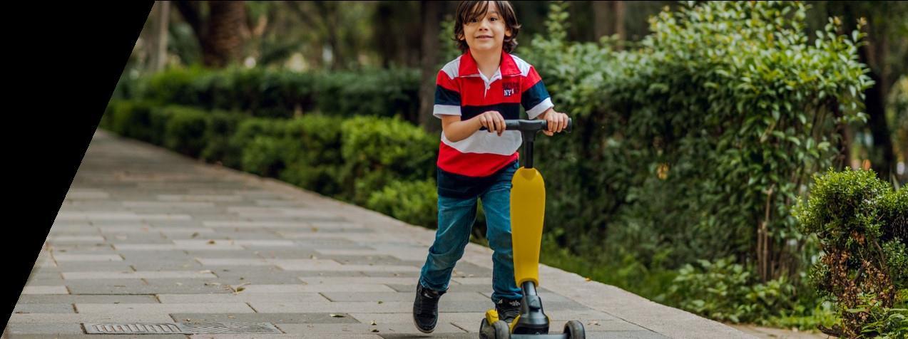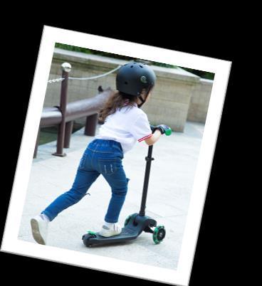 Future Scooter • Pliegue compacto para almacenamiento y portabilidad • Chasis de aluminio ligero. • Divertidas funciones de iluminación llantas plataforma. • Elija entre 3 modos de iluminación: brillo, flash y flash rápido. • 3 ruedas para mayor estabilidad • Manillar ajustable para crecer con tu hijo. • Se requieren pilas: 3 pilas AAA (no incluidas) • Plataforma texturizada para un punto de apoyo. • Soporta hasta 50 Kg • Manillar ajustable Ayuda a desarrollar: Fuerza en las piernas Orientación Espacial Reflejos SCOOTERS 43 ⊵ Video Video