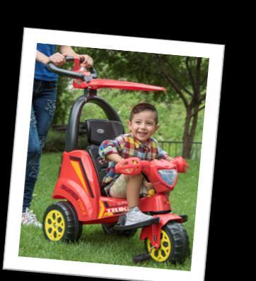 Super Trike Triciclo Evolutivo • Respaldo Ajustable a 4 posiciones • Techo Removible • Descansapies desmontable • Cinturón de seguridad de 3 puntos • Modulo electrónico en el volante • Palanca con sonido mecánico • Amplio compartimento trasero • Soporta hasta 25 Kg MOD: 1342 Ayuda a desarrollar: Coordinación de Movimientos Destreza en los pies Fuerza en las Piernas TRICICLOS 33 ⊵ Video Video