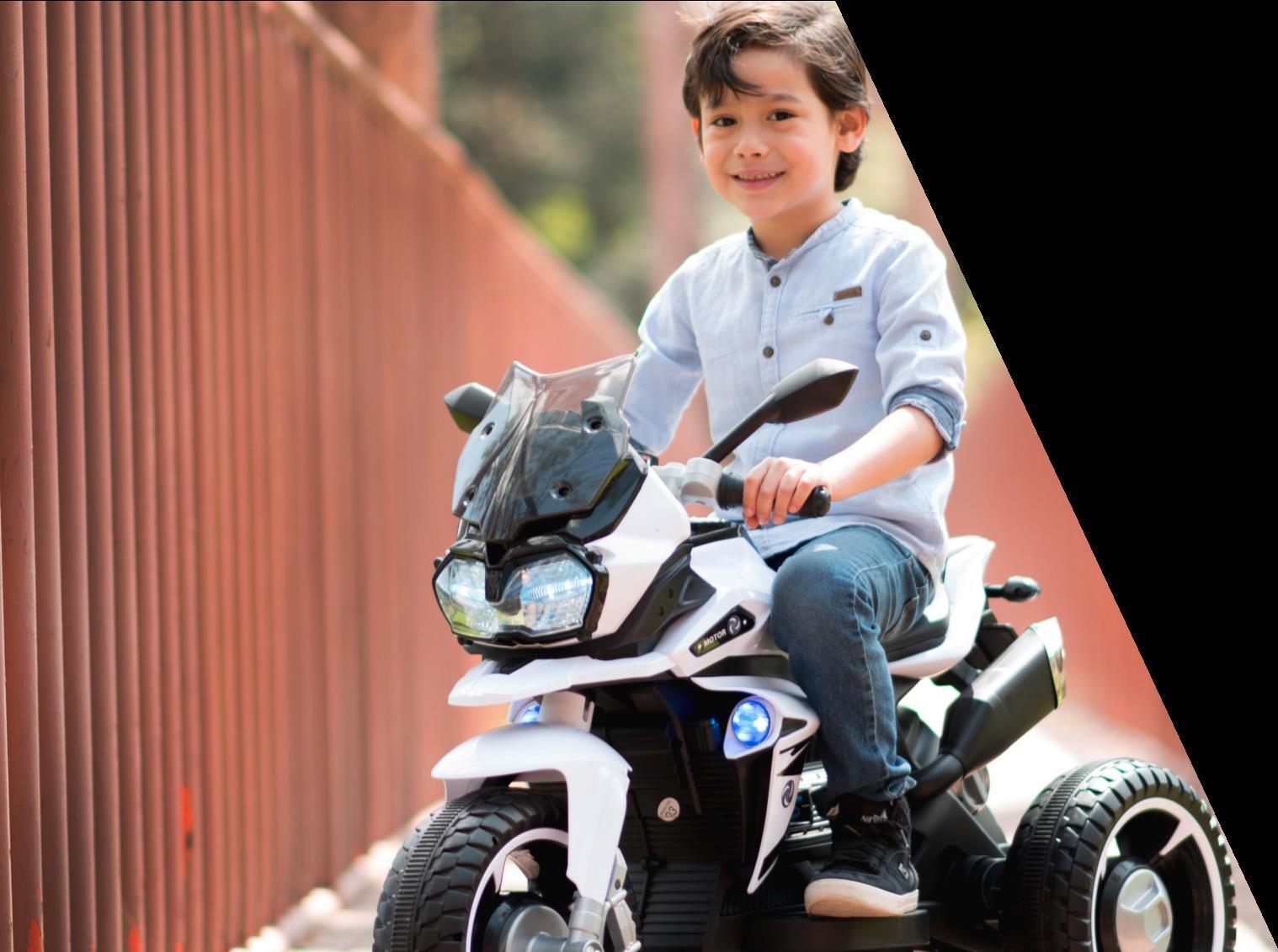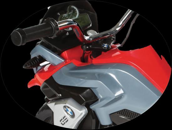 ⊵ VideoBMW 1200 Moto Eléctrica 6V • Sonidos de claxon y luces que encienden al acelerar. • Acelerador en la empuñadura, escape, y ruedas deportivas y ruedas auxiliares • 1 motor, velocidad 4 km/hr. 1.5 de autonomía. • Batería seca recargable 1 x 6 volts (Incluye cargador). Soporta hasta 25 Kg Video MOD: 1256 Ayuda a desarrollar: Coordinación de Movimientos Orientación Espacial Equilibrio y Reflejos ELÉCTRICOS 19