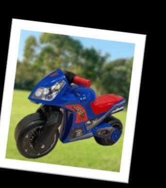 Super Cobra Moto Eléctrica 12 V • Con sirena y claxon electrónico. • Ruedas anchas todo terreno con banda de tracción para mayor duración. • Batería seca recargable 1 x 12 volts (Incluye cargador) 1 motor, velocidad 6 km/hr. • 1.5 de autonomía. • Acelerador de pedal y caja para accesorios • Soporta hasta 35 Kg MOD: 1296 Coordinación de Movimientos Orientación Espacial y Reflejos Disminución de Estrés ELÉCTRICOS 15