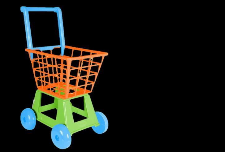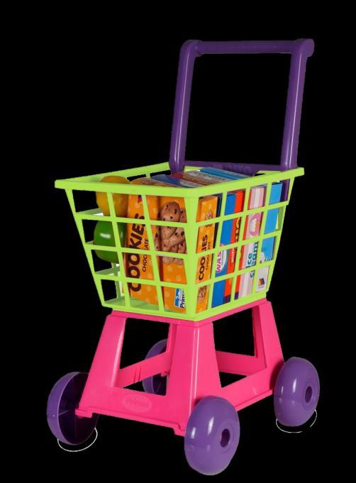 MOD: 2022 C – 2022 D • Moderno carrito de compras Shopping Trolley • Incluye una gran variedad de frutas y alimentos de juguete, vegetales y cajas de diversos alimentos para despensa • Fabricado con plástico de alta resistencia. • Pasarán horas de diversión. Ayuda a desarrollar: Conocimiento de texturas, colores y figuras Manipulación de objetos Organización SHOPPINGS 64