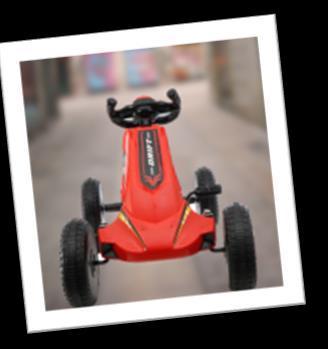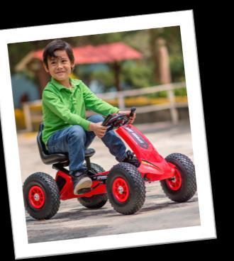 Speed Air Go Kart • Modelo moderno y todo terreno. • Banda de tracción en las 4 llantas. • 4 Llantas de aire • Mecanismo de pedales y freno de mano para derrapes. • Asiento ajustable. MOD: 1458