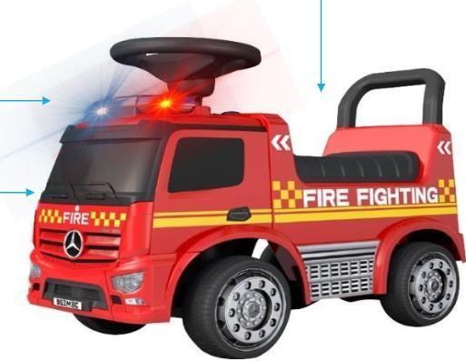 Mercedes Benz Fire Truck Montable Correpasillos • Montable correpasillos. • Asiento con compartimiento para guardar juguetes. • Claxon con simulación de sonido • Luces Led • Elaborado con plásticos de alta resistencia • Soporta hasta 18 Kg MOD: 1709 Ayuda a desarrollar: Fuerza en las Orientación Equilibrio piernas Espacial MONTABLES 51 ⊵ Video Video