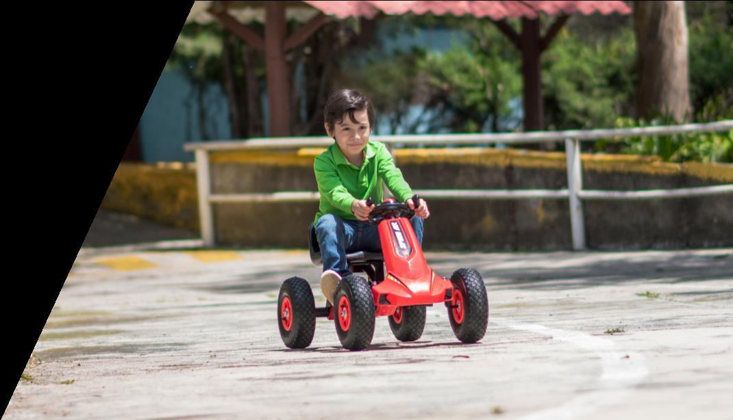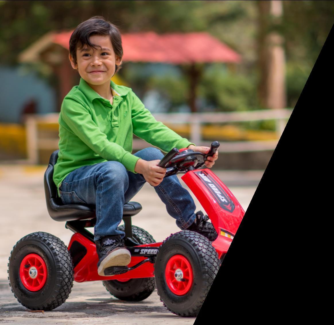 Drift Go Kart • Go Kart de pedales. • Material duradero y seguro, construido con un marco de acero • Rueda eva de 12 pulgadas, con banda de hula para mejor tracción, no requiere inflado. • Asiento ergonómico ajustable. Fácil operación. • Cubierta de seguridad para cadena • Soporta hasta 25 Kg MOD: 1457 Ayuda a desarrollar: Coordinación de Movimientos Orientación Espacial Disminución de Estrés GO KARTS 42 ⊵ Video Video