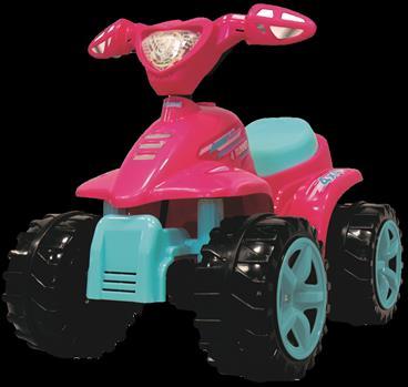 Mini Quad Moto Eléctrica 6V MOD: 1201 1207 • Diseño moderno e innovador. • Ruedas anchas todo terreno • Ruedas traseras con banda de hule antiderrapante. • Batería seca recargable 1 x 6 volts Incluye cargador), • Motor con velocidad de 2.5 a 3.5 km/hr. • Acelerador de pedal • Soporta hasta 25 Kg Ayuda a desarrollar: Coordinación de Movimientos Orientación Espacial Reflejos y Autonomía ELÉCTRICOS 18