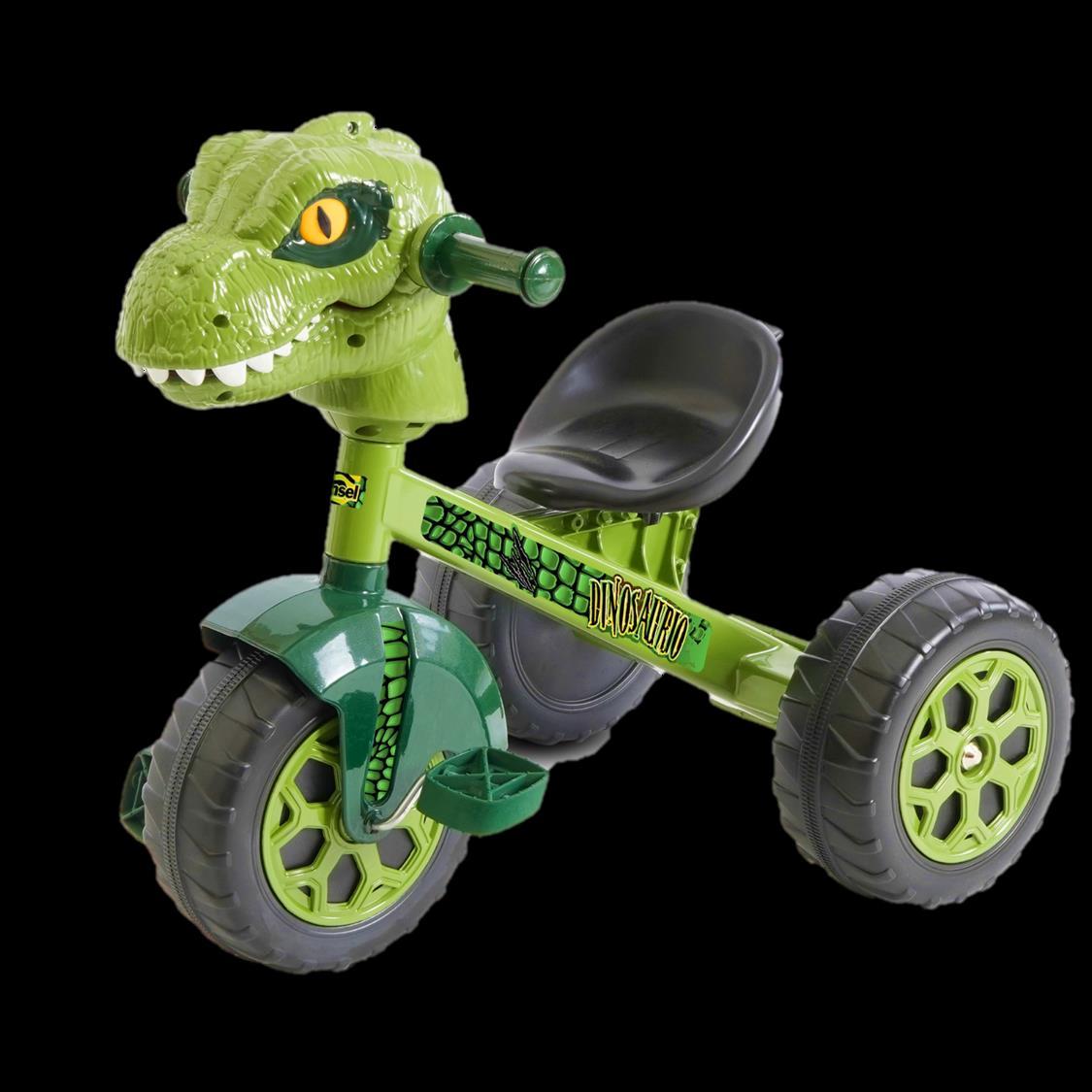 Trax Dinosaurio Triciclo • Ruedas con banda de hule • Asiento Ergonómico que proporciona confort • Pedales con huecos para fácil agarre del zapato/tenis • Manubrio con cubierta para fácil agarre en conducción. • Modulo con sonido y luz en la cabeza • Soporta hasta 22 Kg. MOD: 1387 Ayuda a desarrollar: Coordinación de Movimientos Orientación Espacial Fuerza en las Piernas DINOSAURIOS 12