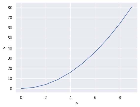 7 sns.lineplot(data=data, x="x", y="y") 8 plt.show()