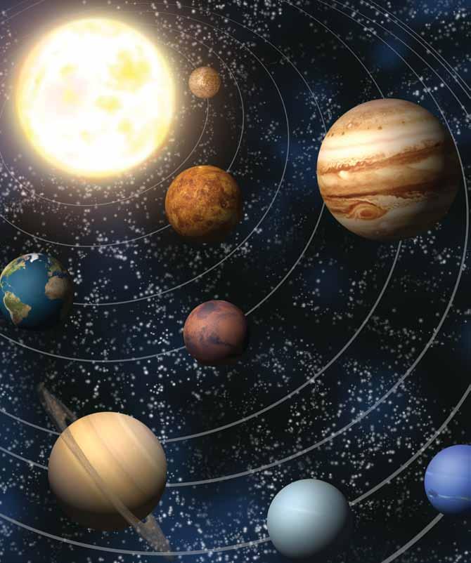 The sun is in the center of a group of eight planets All of these planets, including Earth, circle, or orbit, around the sun The sun, planets, and other objects in space that orbit the sun are called the solar system The word solar has the Latin root word sol, which means “the sun ” Everything in the solar system relates to the sun