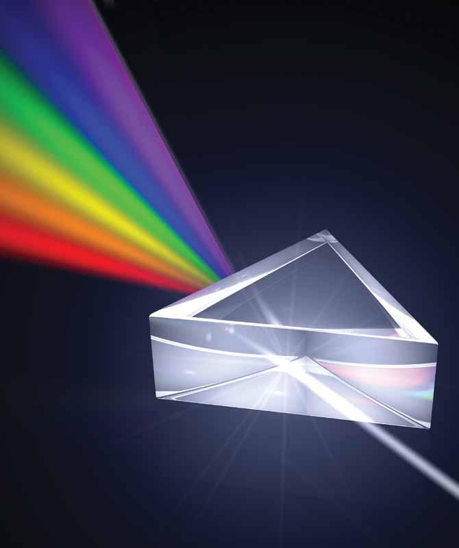 prism—a wedge-shaped piece of transparent glass that breaks up light into all the colors of the spectrum