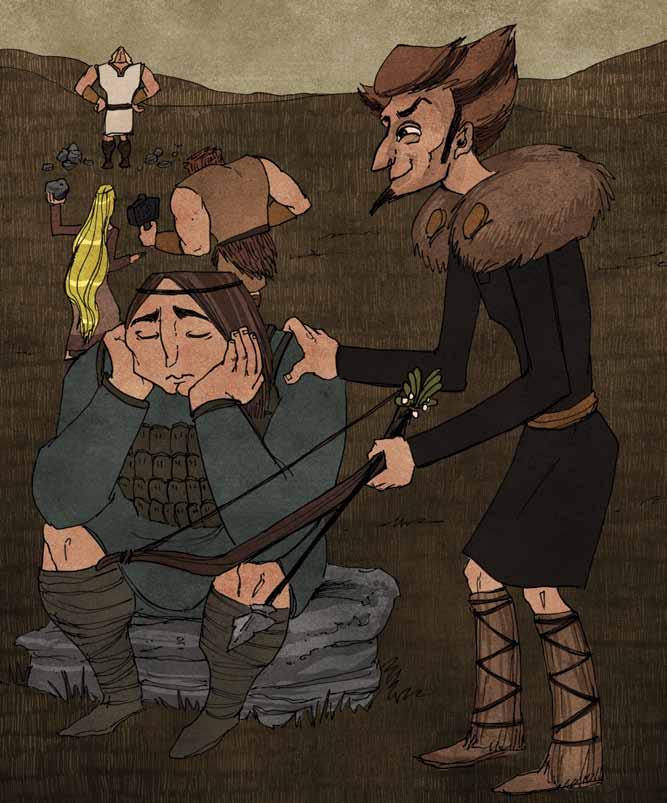 When Loki arrived, he saw the stern look on Odin’s face He saw that Thor was steaming mad, clutching at his hammer, barely holding back his temper Loki saw that lies would do him no good this time He knew he would have to admit what he had done He bowed his head