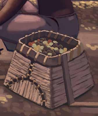 The sun was a yellow haze on the horizon as the two children walked together . Adoette and Awan had the important job of scaring the crows away from the corn seeds that had been planted in the field . The crows had returned just in time to watch the men of the village plant their crops . The dirt, no longer frozen, was now warm enough for planting . Using a hoe fashioned from the jaw bone of a deer and a small tree branch, the men created long, thin channels in the dirt . They placed the corn seeds one footprint apart in the bottom of each channel . They covered the seeds with dirt and watched as the rainfall and the sunshine did the rest . Each family group had its own cornfield . Corn was an important crop . It could be stored for the winter in grass-covered pits . Corn was used to make flour for fried cakes, breads, and puddings . The husks of the corn plant were used to make baskets and mats . In addition to corn, each family grew beans and squash . They also hunted and fished .