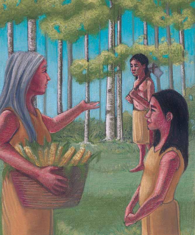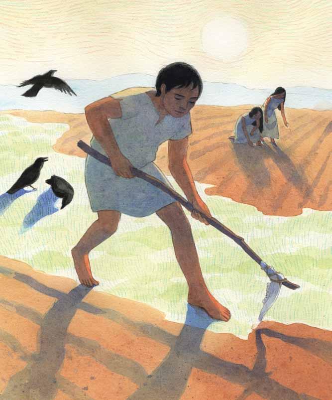 The children chatted with each other as they made their way towards their family’s cornfield . The cornfield was a short distance from their village near the river . As they walked, the sound of crows cawing rose up into the warm, spring air . The crows had returned to signal that wintertime was over . The warmth of the sun was once again encouraging life in the sleeping Earth .