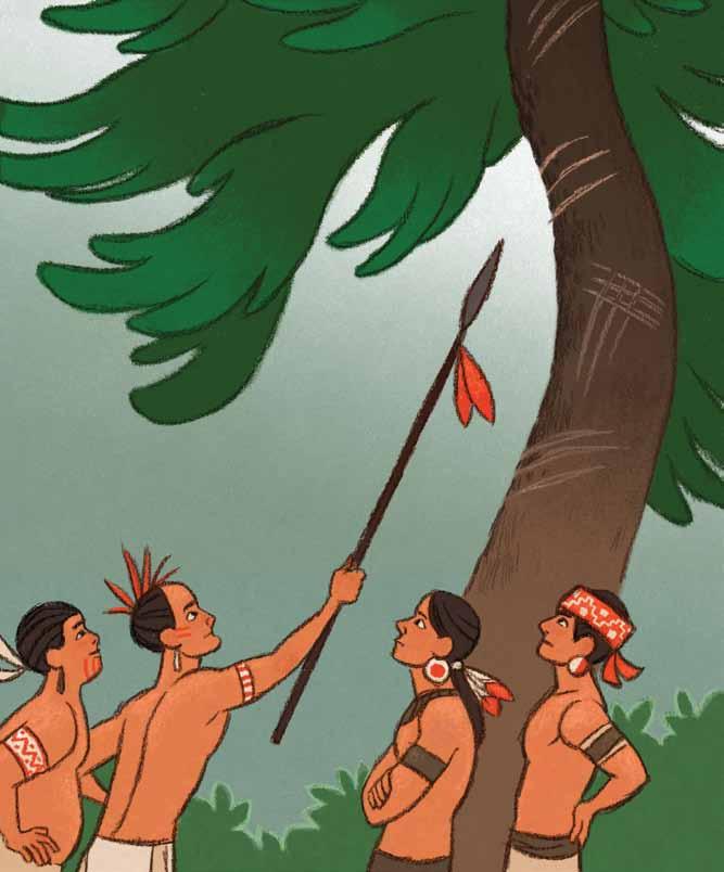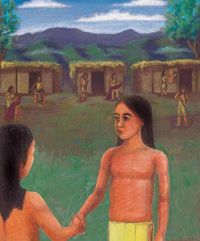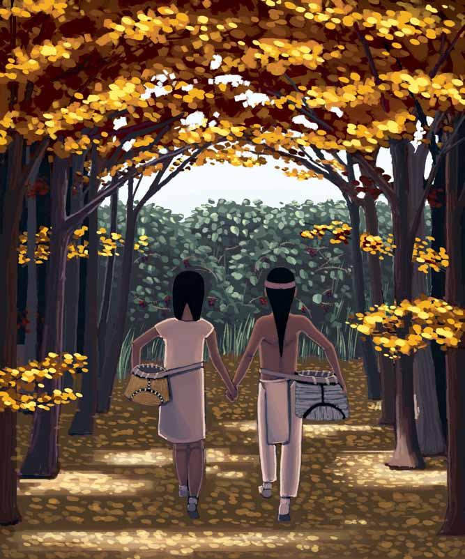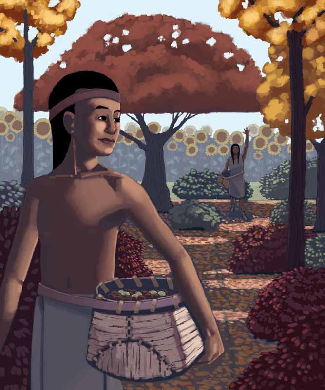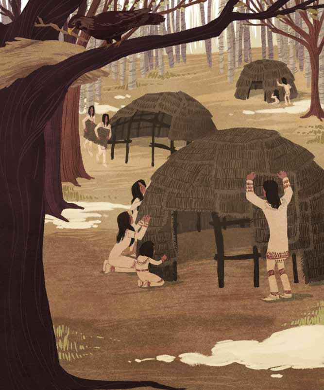 I glanced back toward our village, but it was now almost completely out of sight . I couldn’t see the roofs of the houses and storage rooms, nor the smoke rising up from each family hearth . I could, however, still see our chief’s home . I could also still glimpse the ceremonial buildings that sat upon the large mounds that my people constructed .