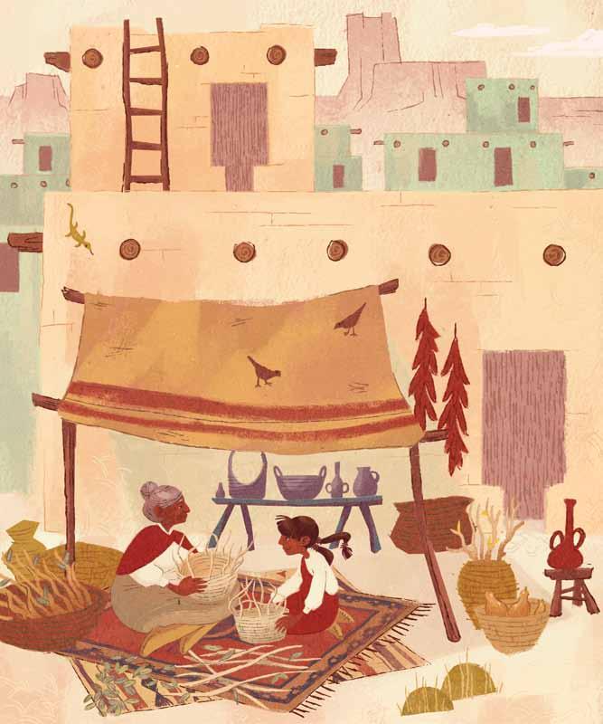Once the corn was planted, the women and children checked to make sure the young seedlings got plenty of water . If the spring rains did not come and water the earth, then the women and children did . The children also had the job of protecting the young plants from all kinds of hungry critters .