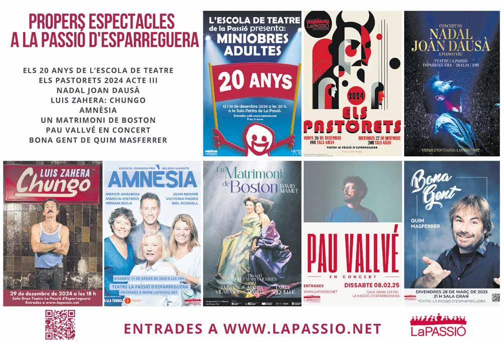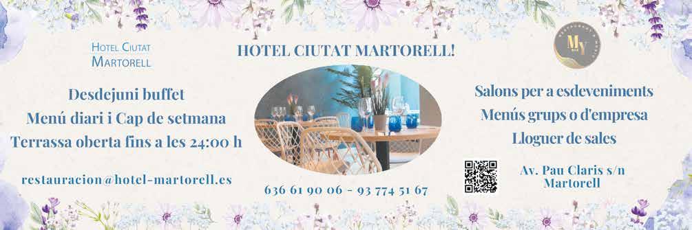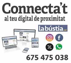 NOVEMBRE Ajuntaments, entitats, veïns i cossos de seguretat de la zona se solidaritzen amb els afectats per la dana de València. La Funifira de Gelida commemora el centenari del ‘Funi’. La sesrovirenca Rosalía guanya un premi MTV EMA 2024 per ‘New Woman’. Cal Liquero de Gelida rep el reconeixement pels 100 anys. El periodista martorellenc Quim Miró rep un premi per la difusió de la cultura popular catalana al món. Agustí Riera, nedador nascut a Martorell, bat un rècord d’Espanya amb el seu equip de relleus. Blancafort Orgueners de Montserrat, SL de Collbató, MTS Tech d’Esparreguera, la Fundació Escola Municipal d’Arts i Oficis d’Olesa i Júlia Vergara, també d’Olesa, són reconeguts en els XII Premis de Reconeixement Cultural del Baix Llobregat. Oleguer Duch d’Abrera i Vicenç Marí de Gelida són distingits com a mestres artesans. La Bústia fa 17 anys.