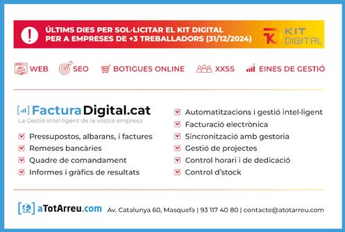 Una dona guanya 15.000 euros de la Loteria a Sant Andreu. Masquefa acull els actes centrals del Correllengua 2024, un esdeveniment dedicat a la masquefina M. Carme Junyent. El Pont de les Arts Sonores (PAS) de Martorell celebra el 10è aniversari. Sant Andreu entrega les claus de 15 habitatges de lloguer assequible.