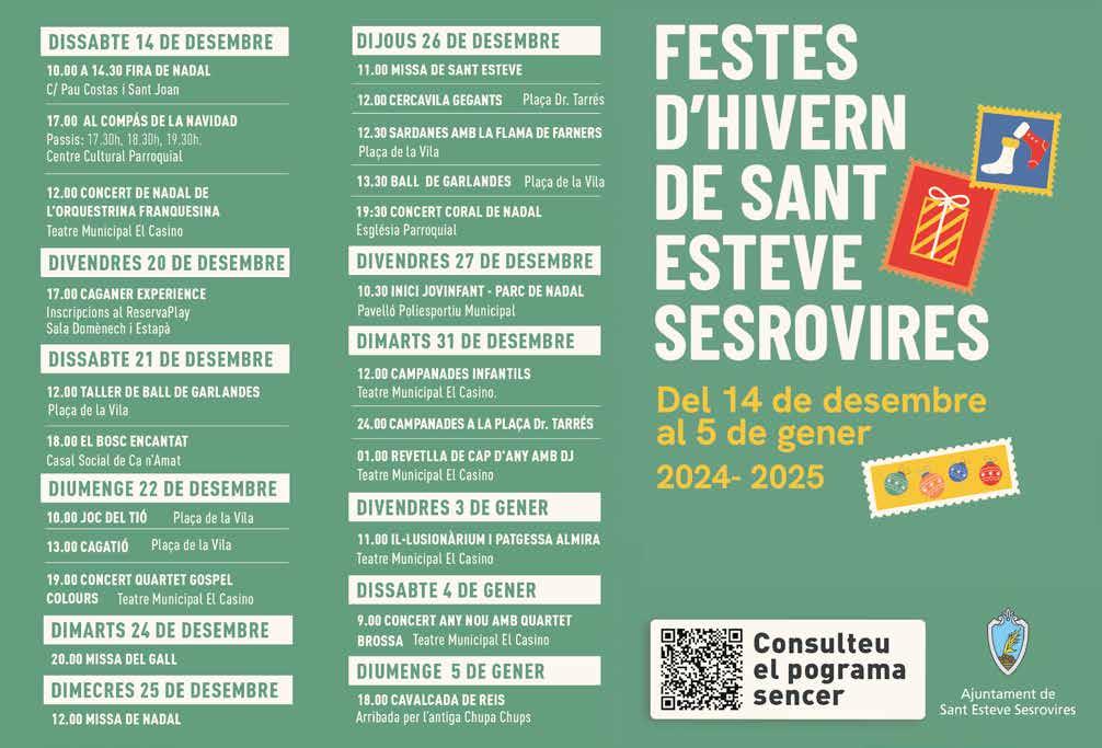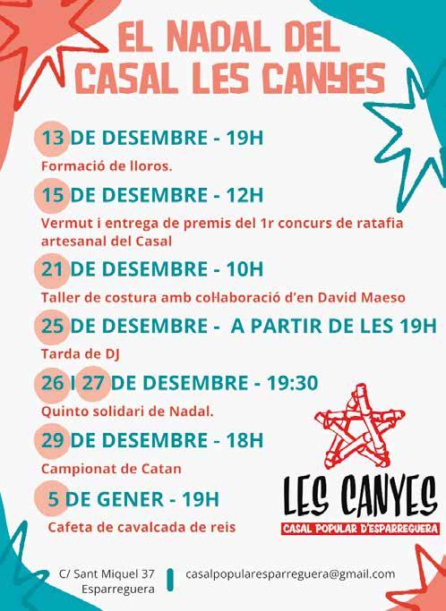 Diumenge 15 desembre Concert de Nadal 18h. Església de Sant Pere 23, 24, 27, 30 i 31 desembre i 2 i 3 gener Temps de Joc - Nadal 9 a 13h. Escola El Turó