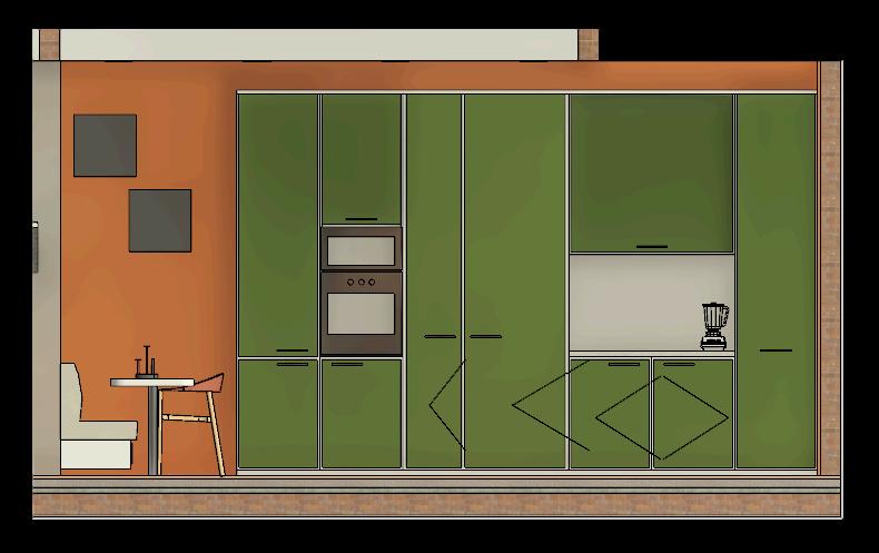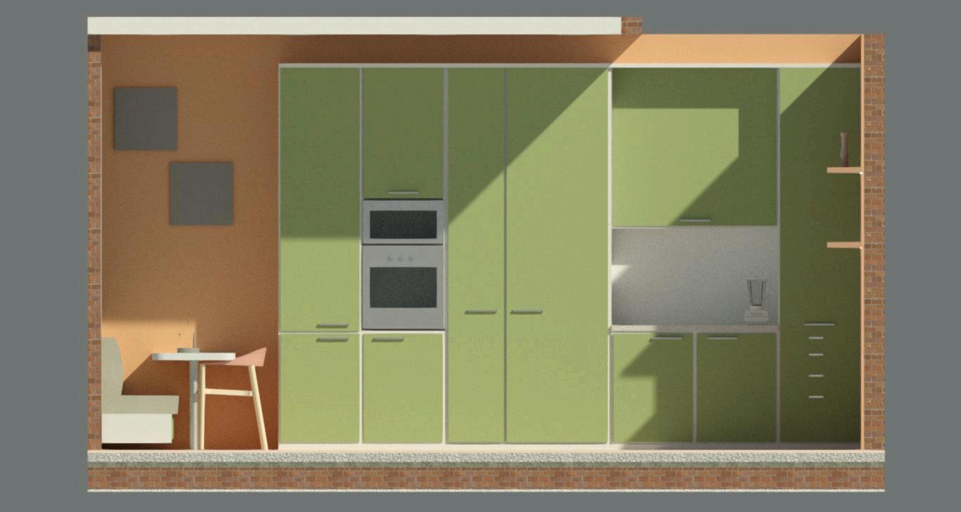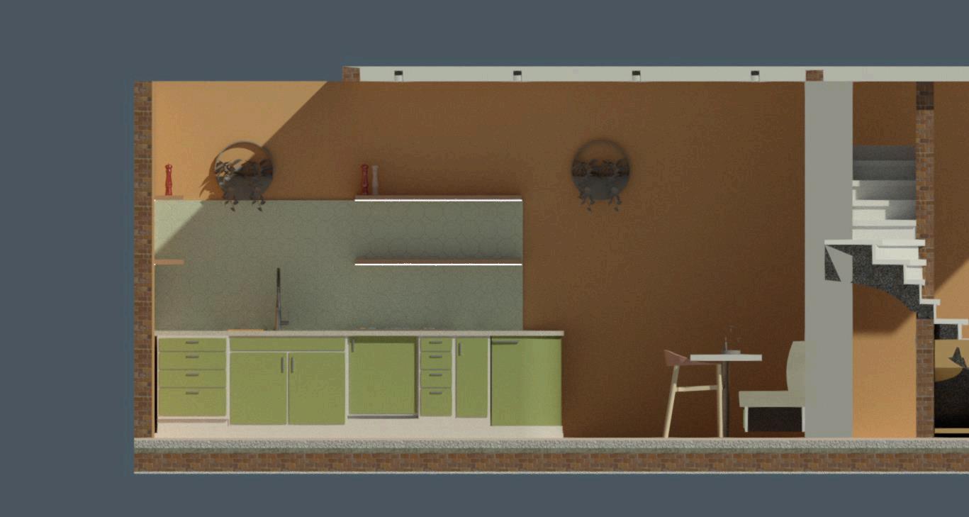El espacio está diseñado para servir a múltiples propósitos, integrando áreas de almacenamiento y entretenimiento culinario. Adicionalmente será un espacio sencillo y cómodo.