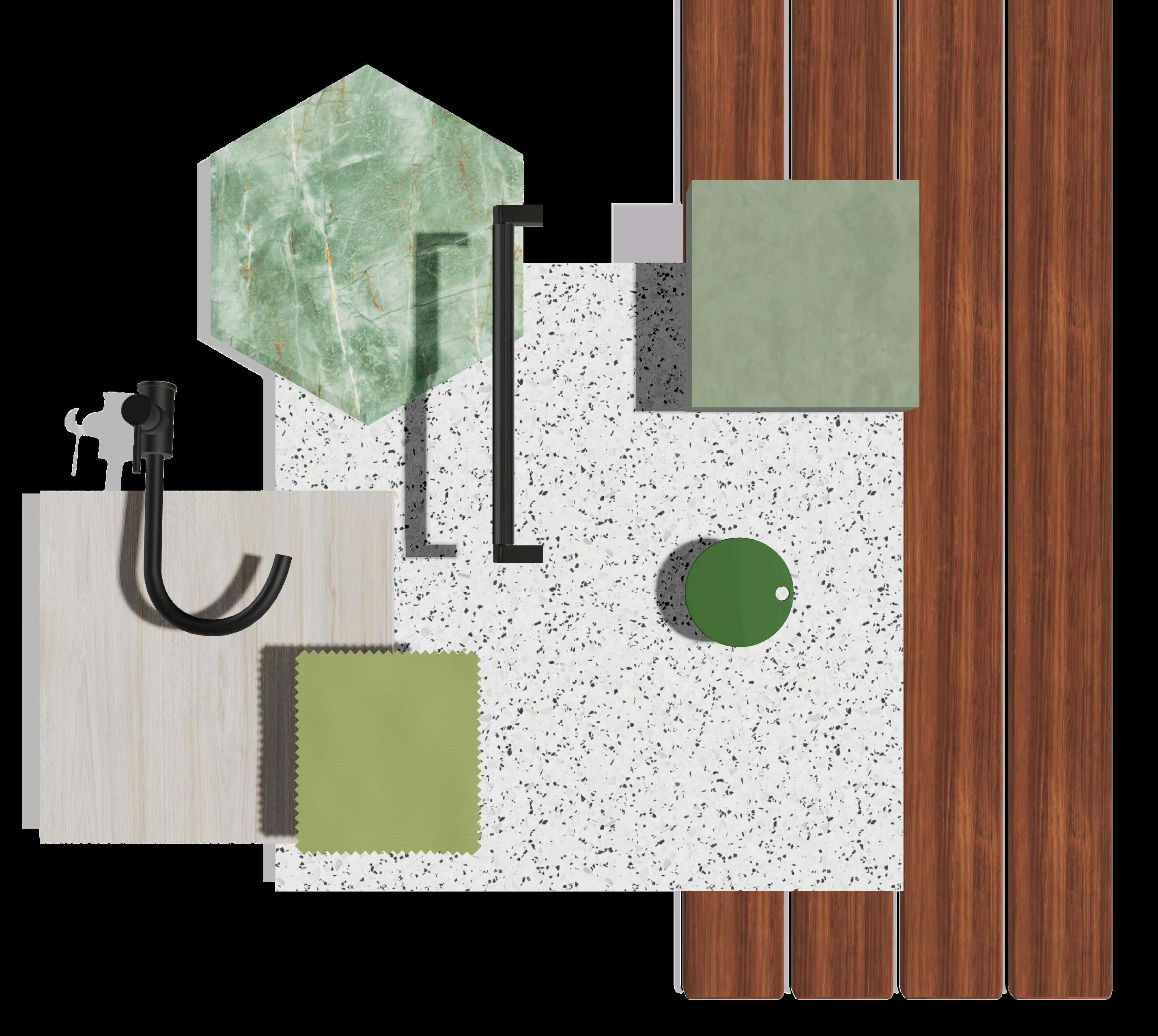 Este proyecto se tiene en cuenta elementos y/o texturas, como terrazo reciclado, ceramica, madera y sus tonalidades.