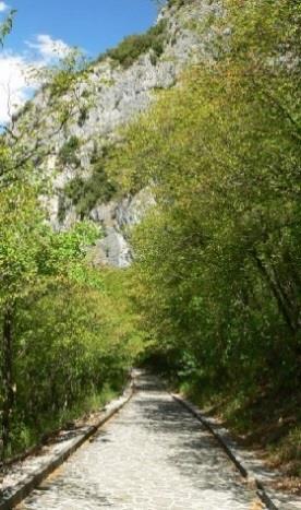 Dopo la sosta e la breve visita si continua sul S. 270c, si calpesta un‟antica lastricatura, e si entra nella valle del Barco