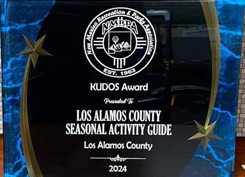 Los Alamos County Community Services Department received the Kudos Award from the New Mexico Recreation and Park Association (NMRPA) for the Los Alamos County Seasonal Activity Guide at its annual conference in 2024.