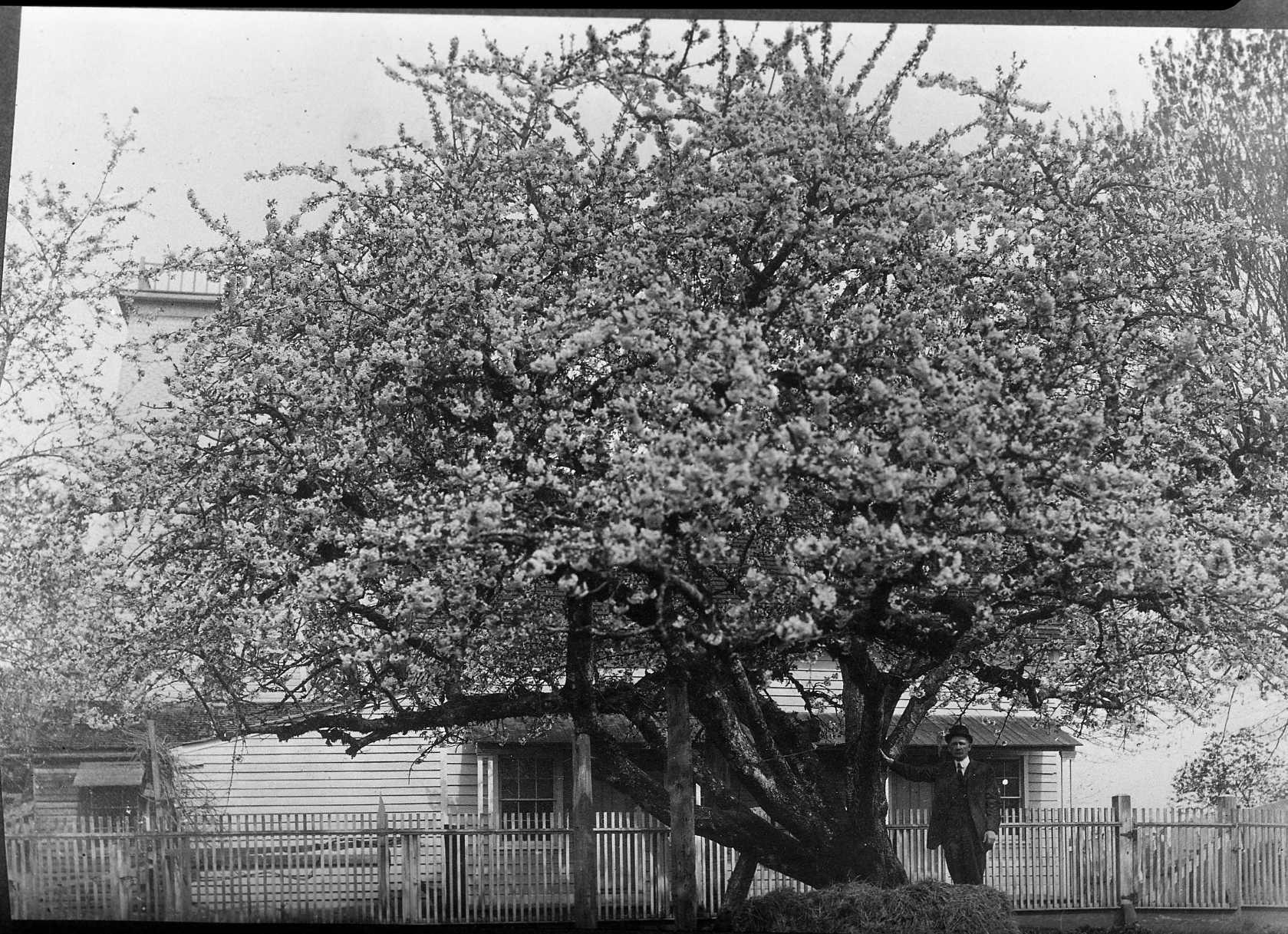 Andsworth Chambers with Chambers Cherry Tree. Vibert Jeffers photograph circa 1925, Susan Parish Collection, Washington State Archives.