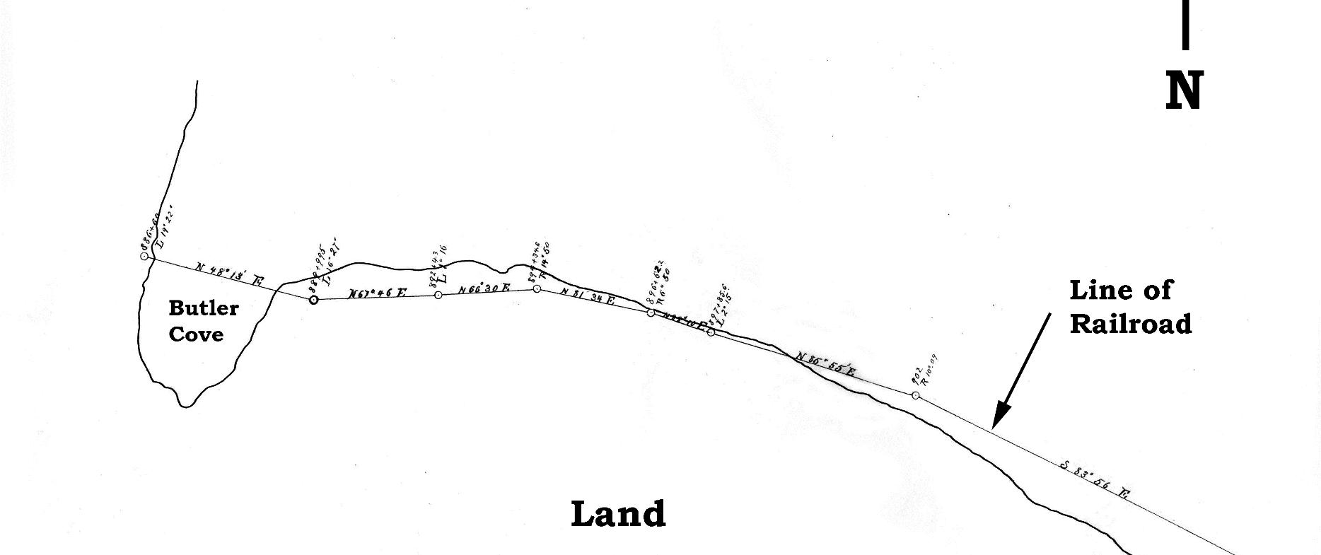 Figures 11 through 15 are early 21st Century photographs of other parts of the extension. The track to Butler Cove was abandoned in 1894.3 This was probably caused, indirectly, by the financial panic of 1893. The busi-