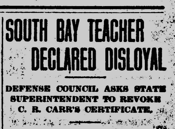 113 “South Bay Teacher Declared Disloyal.” Washington Standard, January 25, 1918.