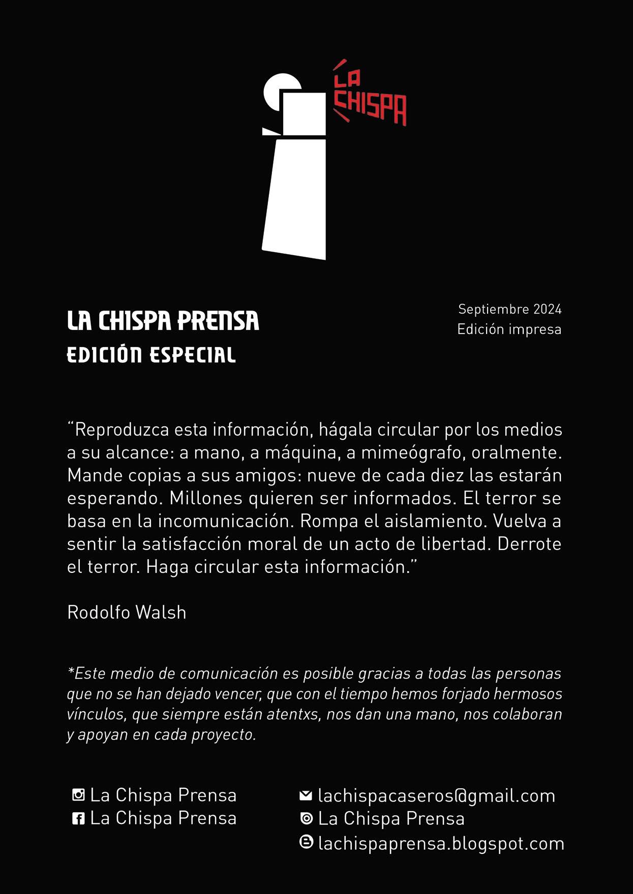 La Chispa Prensa somos compañerxs y amigxs, que hartxs de tanta hipocresía y mentira, en 2017 decidimos comunicar a través de este periódico.