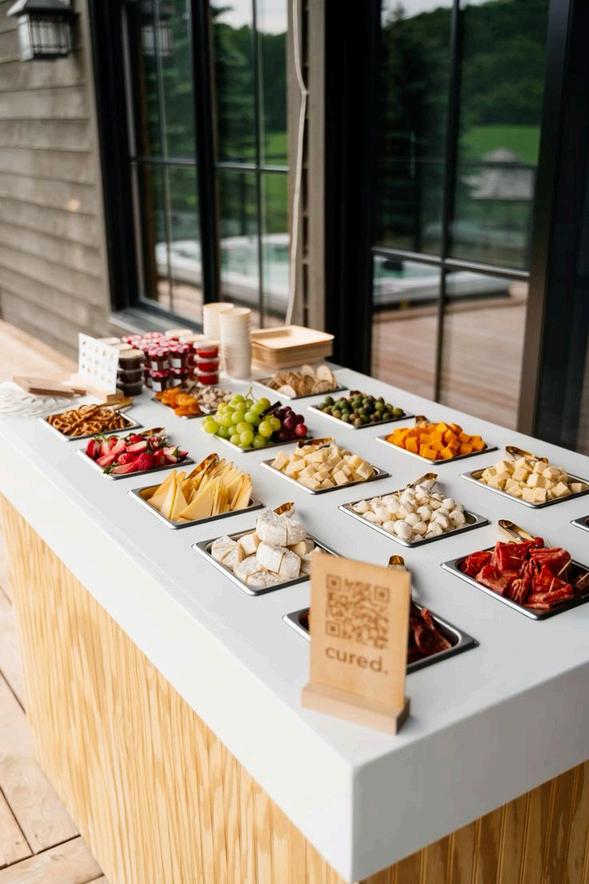 TablasGourmet MiniPostres/Temáticos OCharcutería,ofrecenuna experiencia gastronómica sofisticadaalcompartiruna selección de quesos, frutas embutidos, frutos secos y acompañamientos. Ideales para eventos sociales y corporativos, aportan un toqueelegantealevento.