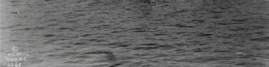 USS R-7 Submarine, launched in 1919, on maneuvers with Palos Verdes Hills in the background. (photo courtesy of Joe McKinzie)