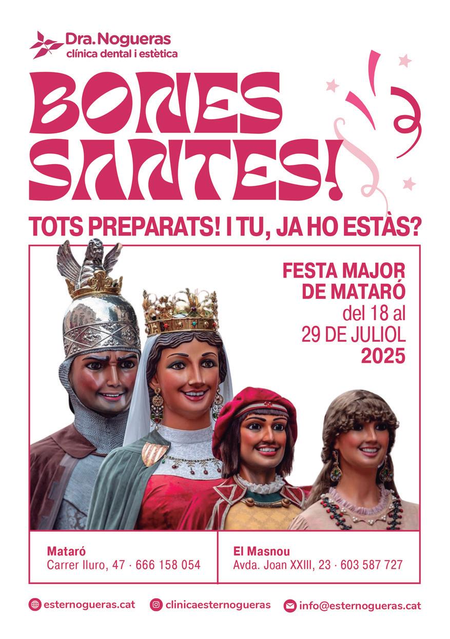 Dv. 25/7/25 | 21 h | Breda de l’Eixample. Enramada popular amb galetes i beguda. Ds. 26 a les 10 h: tallers, inflables i jocs per als petits. A les 12 h: xeringada de colors (+ aigua). A les 17.30 h: xocolatada i espectacle de màgia a càrrec del Màgic Kassano. En acabar tast de vins. A les 22 h: gran sopar de germano, pica-pica, amanida, mongetes amb botifarra, pa, aigua, vi, postres i cafè. Dg. 27 a les 18 h: sardinada popular i rom cremat. A les 19 h: concert amb el grup Prisoners.