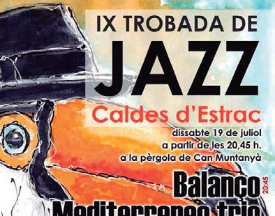 Ds. 19/7/25 | 20:45 h | Pèrgola de Can Muntanyà. La Riera, 56. Nit de música i talent a l’aire lliure en la IX Trobada de Jazz a Caldes d’Estrac! Ritmes brasilers com a eix temàtic en l’epicentre musical de la vila amb concerts, DJ i servei de bar. Obrirà la trobada el grup Balanço Mediterreneo Trio, que oferirà un repertori de samba. A partir de les 22 h, serà el torn de Bossa Nova Revisited ft. Ramiro Pinheiro, amb els millors ritmes brasilers. La nit clourà amb una sessió de DJ Celia Lux, que a partir de la mitja nit allargarà l’ambient musical. Preu: 15 €, gratuït per a persones menors de 14 anys. De venda a www.eventbrite.es