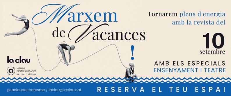 La revista LA CLAU no es fa responsable del contingut dels articles i missatges publicitaris dels anunciants. No és permesa la reproducció total o parcial d’aquesta publicació, ni el seu tractament informàtic, ni la transmissió de cap forma o per qualsevol mitjà, ja sigui electrònic, mecànic, per fotocòpia, per registre o d’altres mitjans, sense el permís previ i escrit dels titulars dels drets de la propietat intel·lectual. Dep. Legal B. 12. 188/84