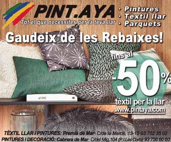 Director: Xavier Clarimon Administració: Joan Berdún Agenda i cultura: Azucena Peidro Disseny gràfic i maquetació: Glòria Pitarch, Loida Gavilan i Ricard Bosch Dep. comercial: Anna Albert, Ismael Bustos i Joan Segura. Redacció i col·laboradors: Albert Calls, Carles Sierra, Gisela Ferrer, Marian Barreda, Nicole Martínez, Regina Ferrando i Sílvia Tarragó. Impremta: Litografia Rosés. Distribució gratuïta a: ajuntaments, forns i pastisseries, supermercats, bars i restaurants, perruqueries, farmàcies, centres esportius, gasolineres... d’Alella, Arenys de Mar, Arenys de Munt, Argentona, Cabrera