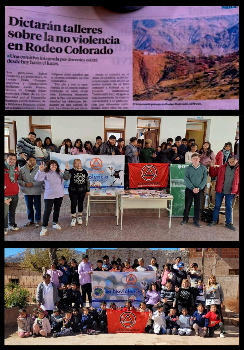 Talleres de NoViolencia en Rodeo Colorado Iruya , al Norte de la Provincia de Salta Argentina y a unos 3000m de altura, Las Profesoras Laura Romano y Alejandra Vittar dieron talleres sobre la “Formaciòn de Comunidades No violentas”, con el apoyo de la UNSa ( Universidad Nacional De Salta ,El Colegio Secundario Nº 5155 y la Escuela Primaria Nº 4424 de la localidad de Rodeo Colorado