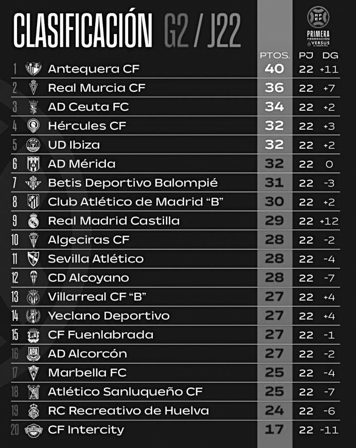 El resultado dejaba abierta la posibildad de que el Real Murcia recortase distancias en la clasificación, colocándose a un solo punto, si lograba la victoria en su partido ante el Alcoyano en la Nueva Condomina Finalmente, la derrota de los pimentoneros dejó las cosas tal cual estaban y el Antequera, pese a caer ante Fuenlabrada, se mantiene con cuatro p u n t o s d e v e n t a j a a n t e e l M u r c i a , segundo en la tabla con 36, y de seis puntos respecto al tercero, el AD Ceuta