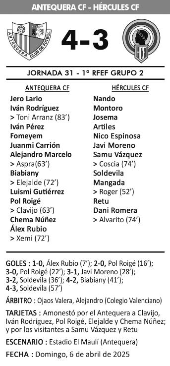 El Maulí sufre y disfruta de la victoria del Antequera CF frente al Hércules (4-3)