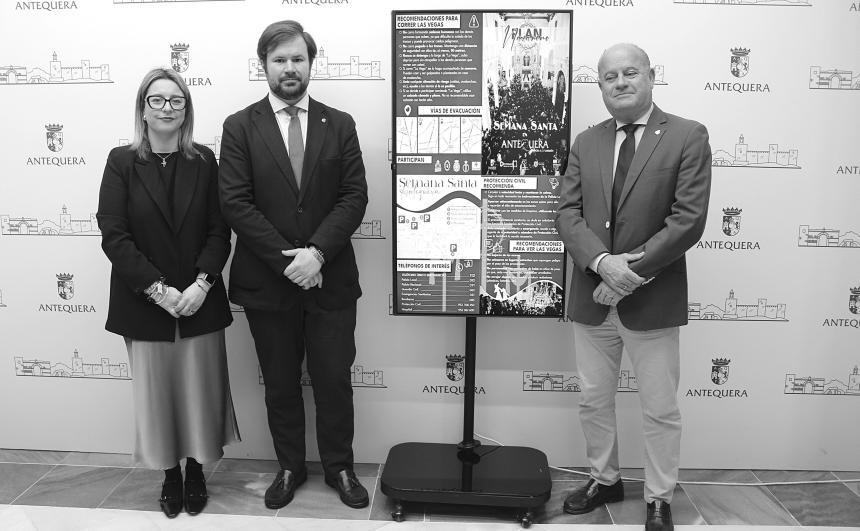 El trabajo para hacer realidad el Plan Nazareno arrancó en el mes de enero y, desde entonces, se han venido celebrando numerosas reuniones con los cuerpos implicados, la Agrupación de Cofradías de Semana Santa y la propias cofradías “Se ha realizado un trabajo bastante importante esta Semana Santa y se han realizado unas tareas previas por distintos servicios, no solamente del Área de Seguridad, sino de todo lo que es el Ayuntamiento de Antequera y de otros Cuerpos y Fuerzas de Seguridad Bomberos han estado inspeccionando fachadas y elementos Policía Nacional ha realizado la inspección rutinaria de las alcantarillas de las calles de los recorridos, ha comprobado barandillas de Cuesta Archidona o las vías de evacuación que se realizan en Las Vegas”, ha señal a d o , a l t i e m p o q u e h a i n f o rmado que se ha procedido también a la retirada de maceteros o contenedores