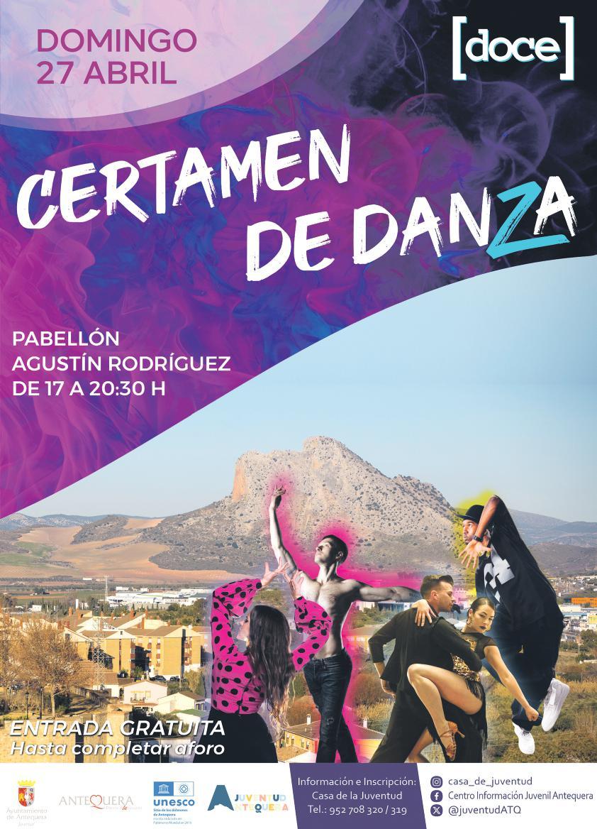 A N T E Q U E R A . A n t e q u e r a , con motivo del Día Internacion a l d e l a D a n z a , a c o g e r á u n certamen dedicado a ella este domingo, 27 de abril Será en el Pabellón Agustín Rodríguez, e n h o r a r i o d e 1 7 : 0 0 a 2 0 : 3 0 horas, formando parte además del programa juvenil Doce del
