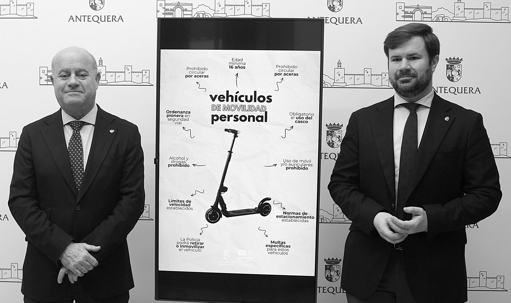 A N T E Q U E R A . E l Ay u n t amiento de Antequera ha present a d o u n a n u e va o r d e n a n z a municipal para regular el uso de los vehículos de movilidad personal (VMP), como los patinetes eléctricos, en todo el municipio La medida, que entrará en vigor en el primer trimestre de 2026, pretende garantizar una mayor seguridad vial y mejorar la convivencia entre los peaton e s , c i c l i s t a s , c o n d u c t o r e s y usuarios de estos vehículos El alcalde de Antequera, Manolo Barón, acompañado del teniente de alcalde delegado de Seguridad y Tráfico, Antonio García M e n d o z a , d e t a l l a r o n e s t a p a s a d a s e m a n a e n r u e d a d e prensa las principales normativa s q u e r e g i r á n e l u s o d e l o s patinetes eléctricos