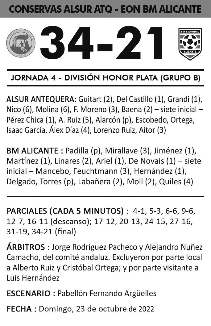 Ya con las fuerzas mermadas y con igualdad de nuevo en el número de inte grantes por cada equipo, apretó más el Antequera pero no consiguió volver a mover el marcador Enorme esfuerzo de los blanquiverdes, que continúan sin cono cer la derrota en liga, jugando más de media hora con uno menos y pese a todo, mereciendo llevarse algo más que el punto final conseguido