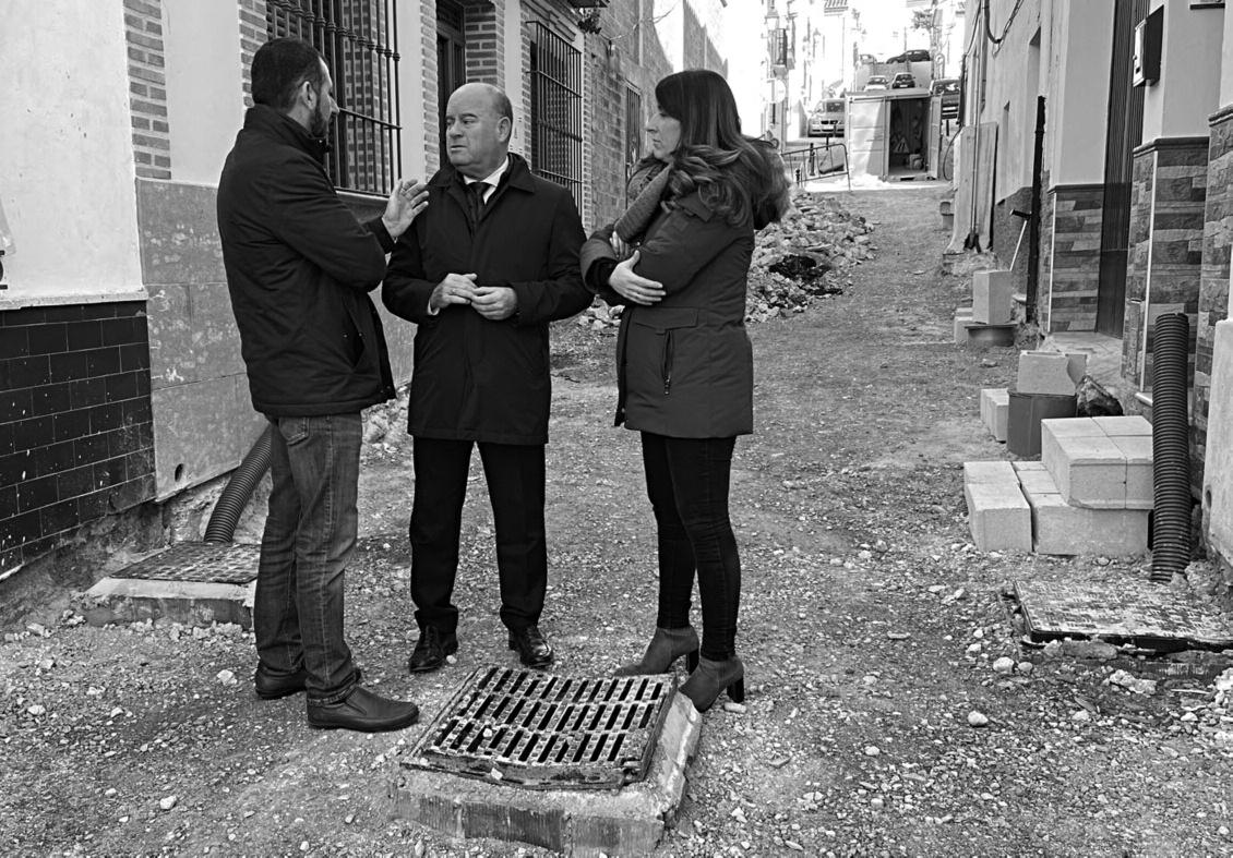 ANTEQUERA El alcalde de Antequera, Manolo Barón, la teniente de alcalde delegada de Obras y Mantenimiento, Teresa Molina, y el teniente de alcalde d e C o o p e r a c i ó n C i u d a d a n a , A l b e r t o A r a n a , v i s i t a r o n e l pasado miércoles el barrio de Veracruz para comprobar de primera mano el avance de las obras en las calles Polilla y Centinela