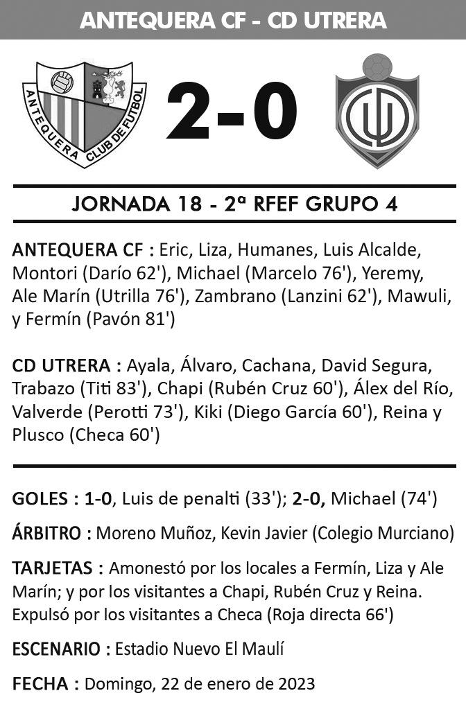 Fue otro partido donde el Antequera se impuso a su rival de forma inapelable para mantener El Maulí inexpugnable en la 2022-2023, consiguiendo un resultado de 2-0 que se hizo corto por las ocasiones q u e e l e q u i p o g e n e r ó e n e l á r e a v i s i -